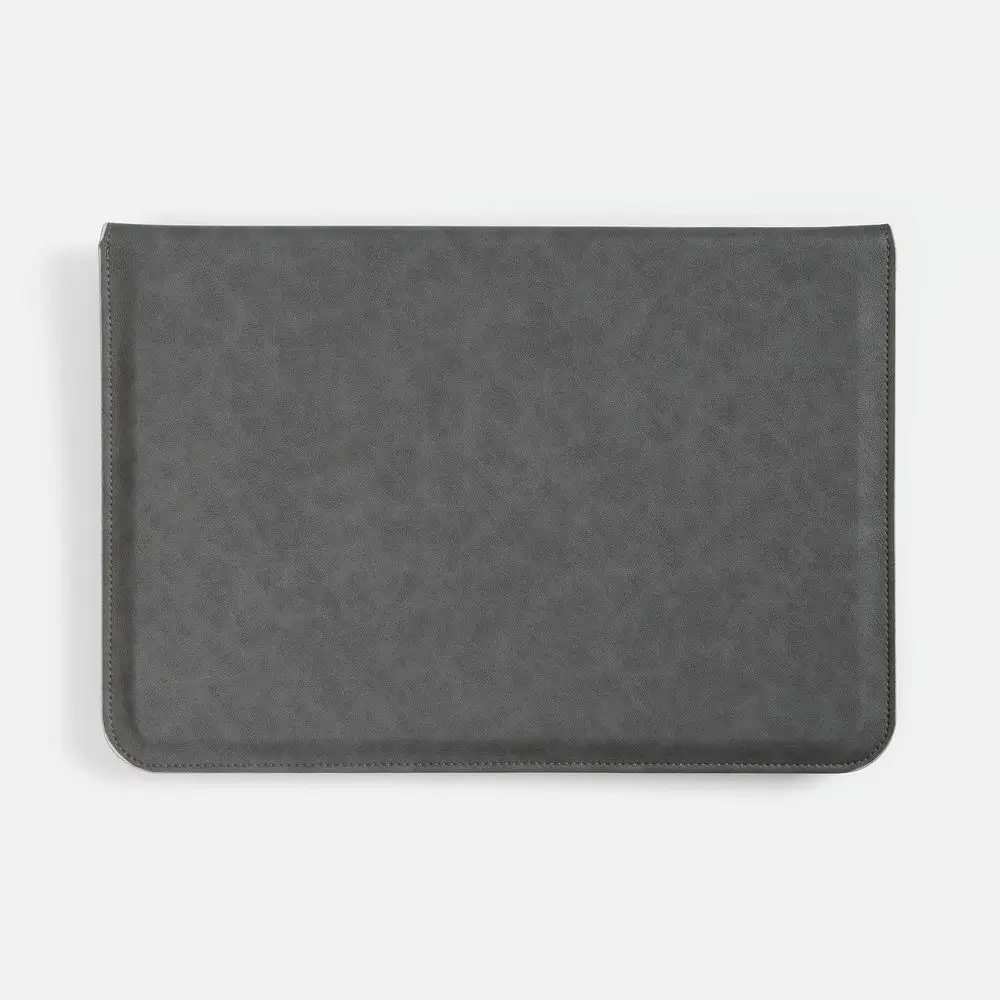 Чехол для ноутбука с диагональю до 15,6 выполнен из материала Petrus, серого цвета, дополнен окрашенным срезом края серого цвета.