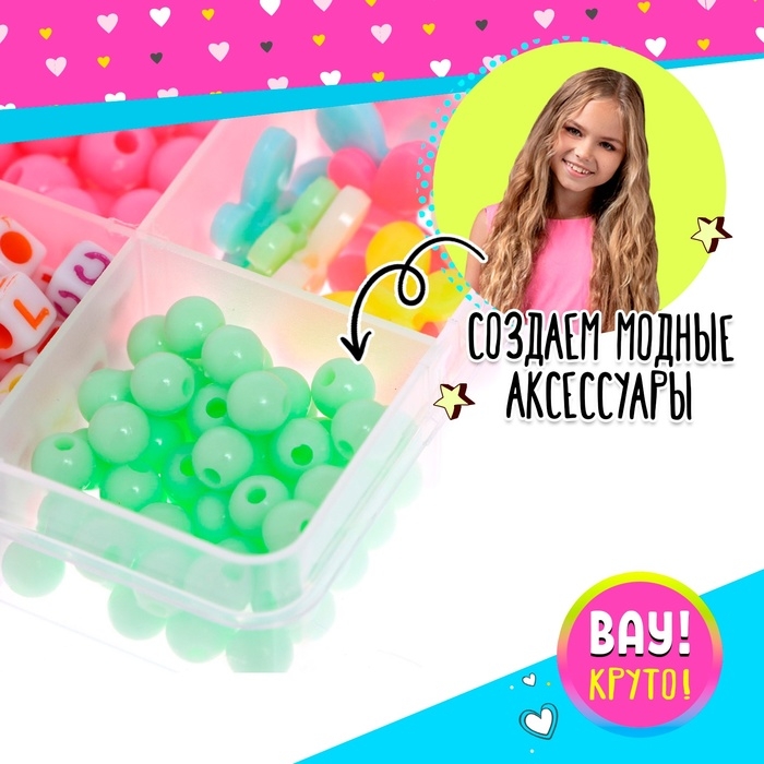 - Благодаря разноцветным и многогранным бусинам, набор позволяет создавать украшения, которые подчеркнут индивидуальность и стиль.