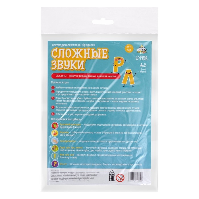 Настольная игра-бродилка «Сложные звуки Р', Л'»