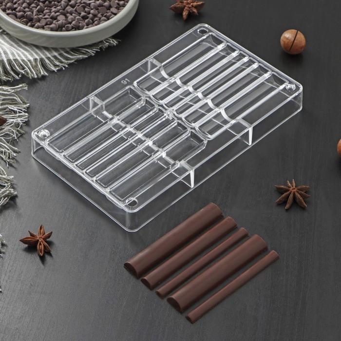 Форма для шоколада «Стикс», 20×12×2,5 см, 12 ячеек 9×1,5/1/0,8 см, цвет прозрачный