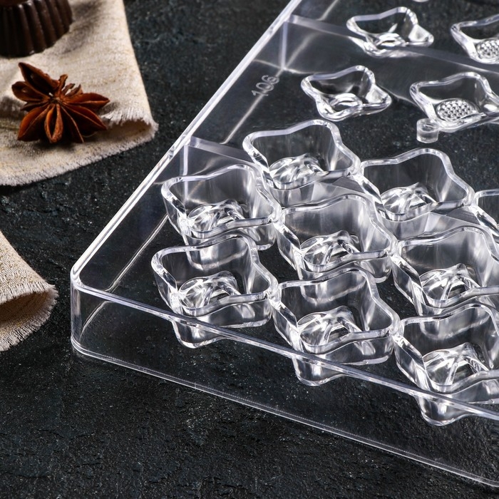 Форма для конфет и шоколада «Блеск», 18 ячеек, 20×12×2,5 см, цвет прозрачный