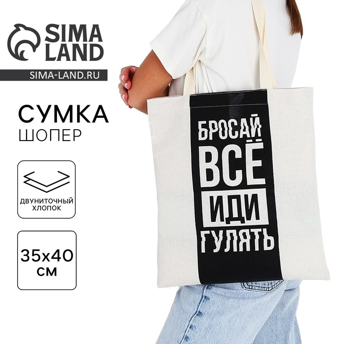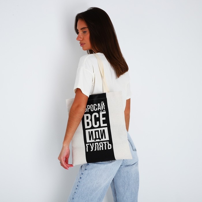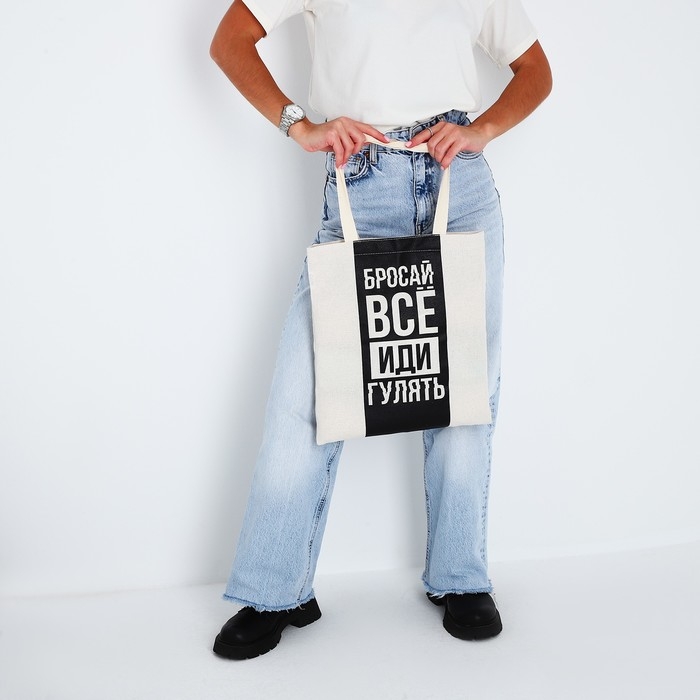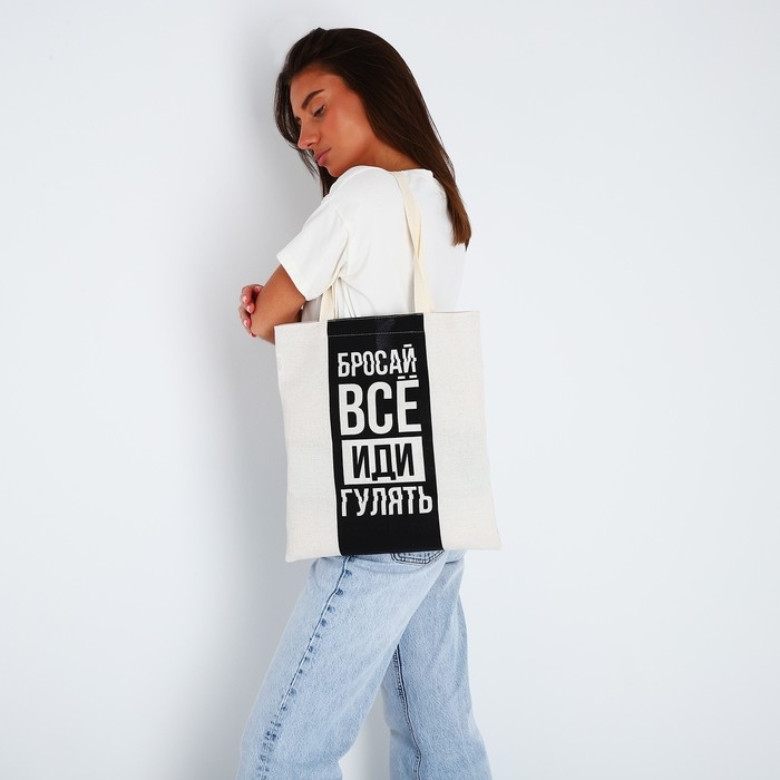 Шопер «Бросай все» 35 х 0,5 х 40, отд без молнии, без подклада, бежевый