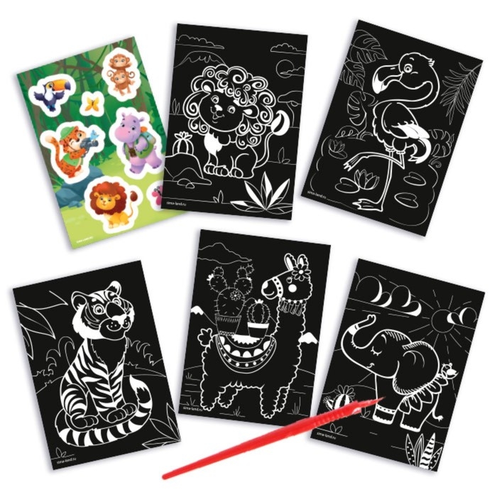 Гравюра блокнот детский «Удивительные животные», 10 листов, штихель