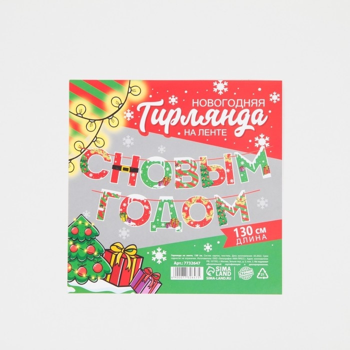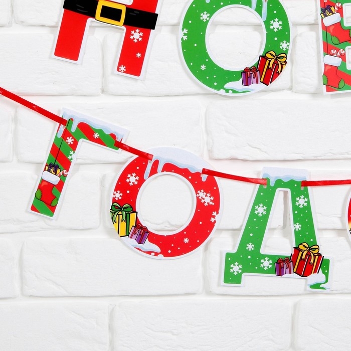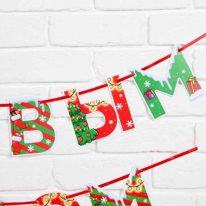 Гирлянда на ленте новогодняя «С Новым годом!», на Новый год, яркая, длина 1.3 м.