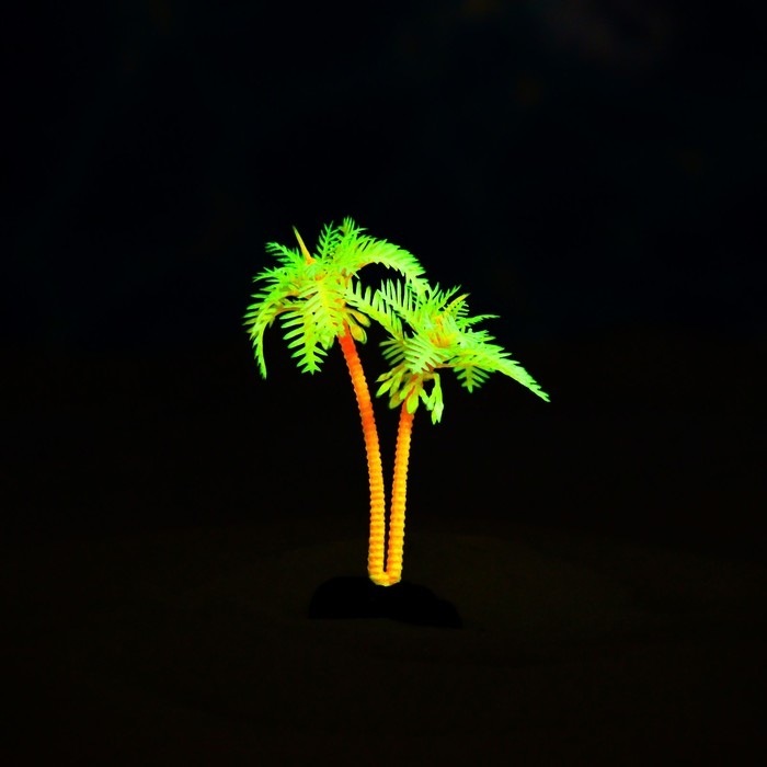 Растение искусственное аквариумное "Пальма", светящееся, 14 см, зелёное