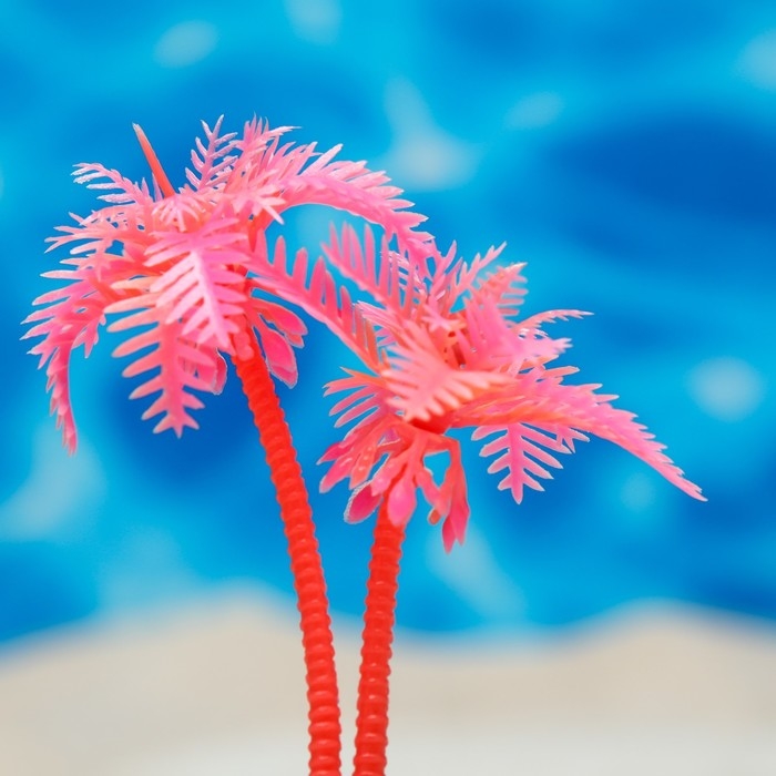 Растение искусственное аквариумное "Пальма", светящееся, 10 см, красное