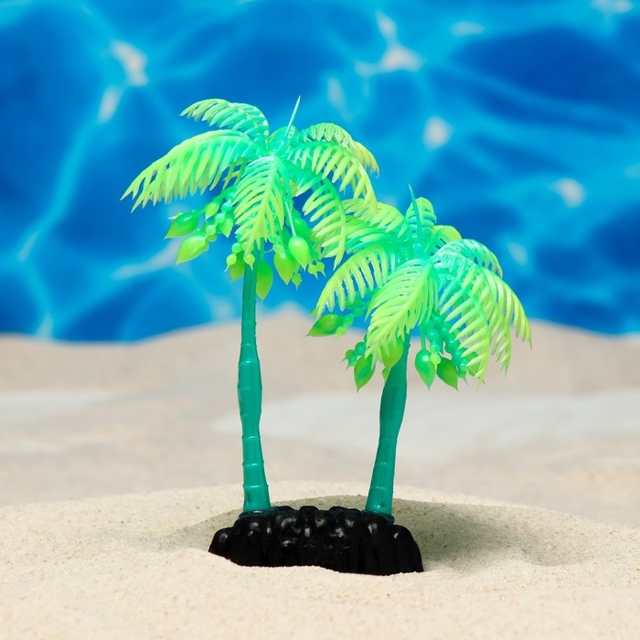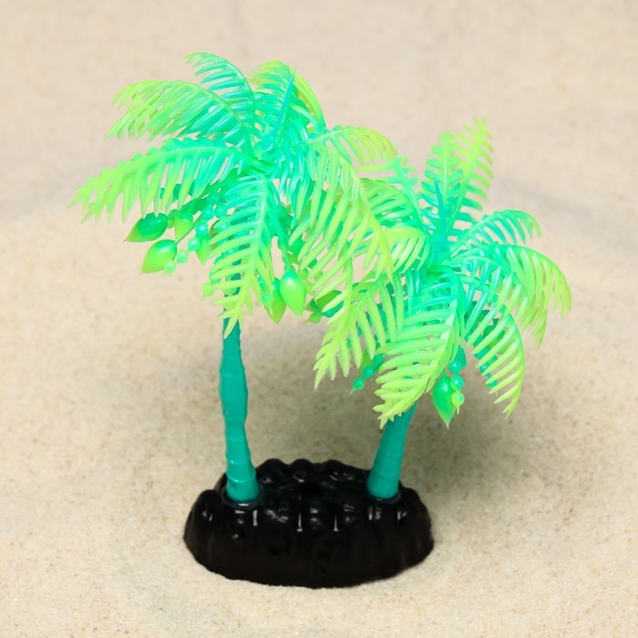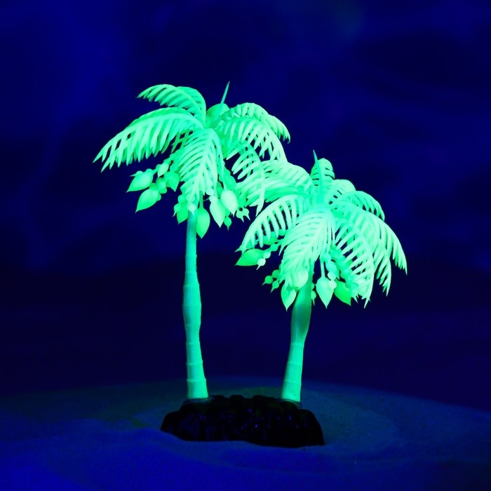 Растение искусственное аквариумное "Пальма", светящееся, 14 см, зелёное