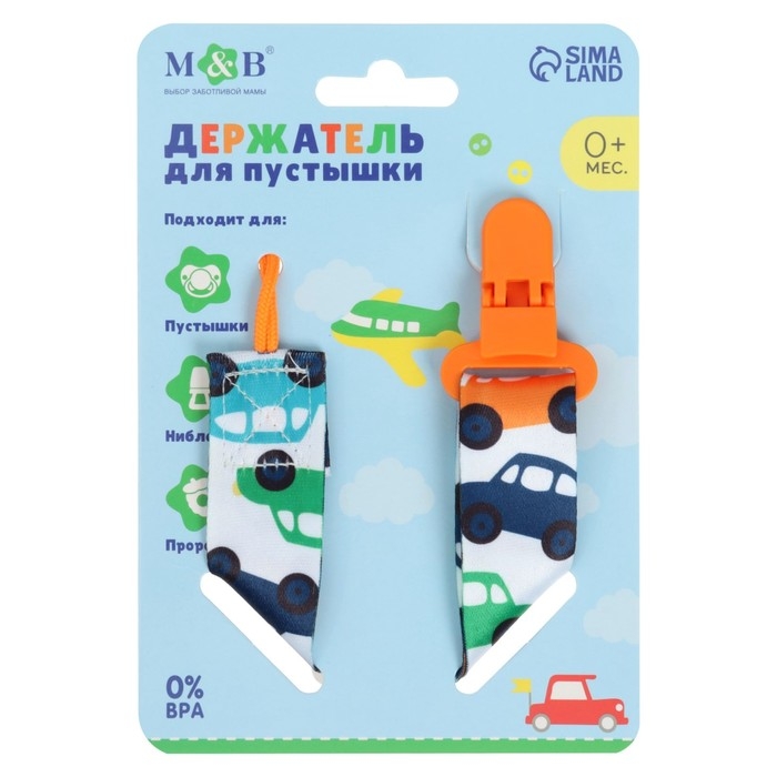 Держатель для соски - пустышки «Машинки», на ленте