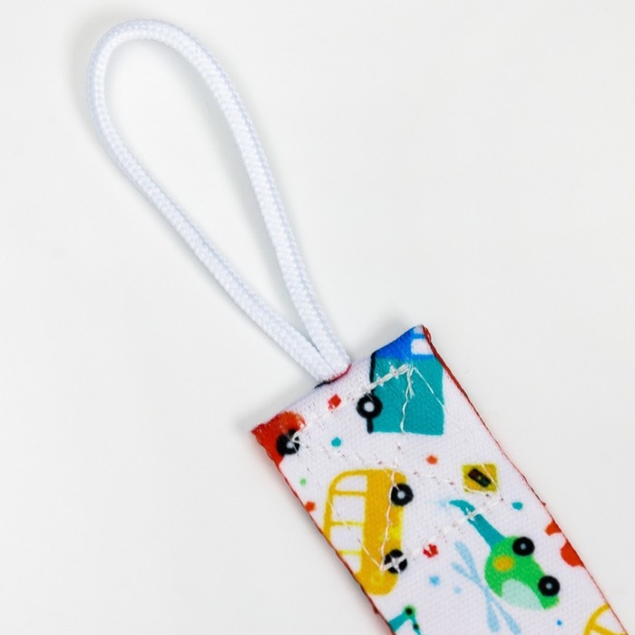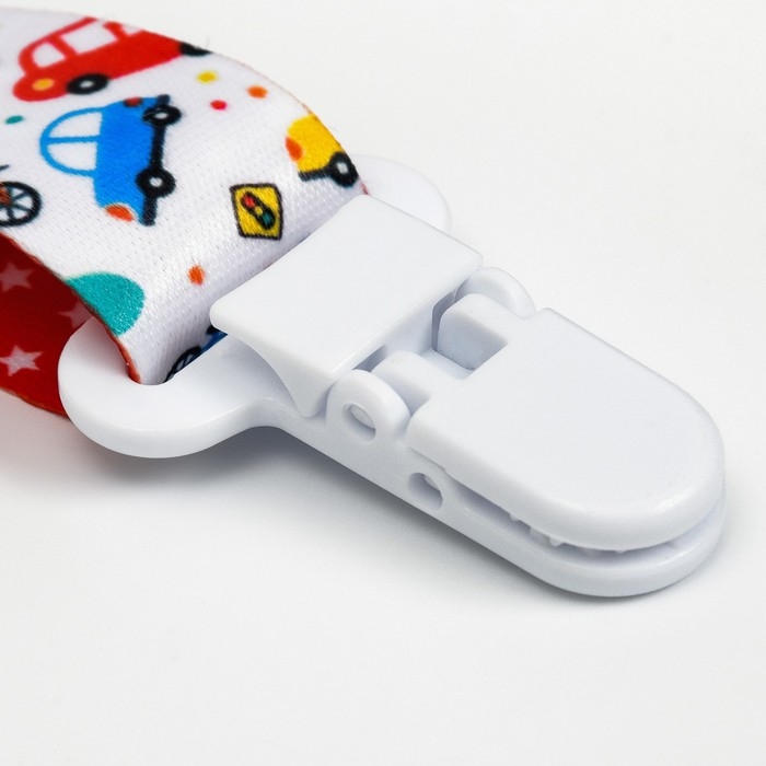 Изделие фиксируется на одежде ребёнка. На конце цепочки есть карабин, который зацепляется за кольцо пустышки. Надёжное крепление убережёт вещь от падения на пол, если малютка случайно выронит её изо рта.