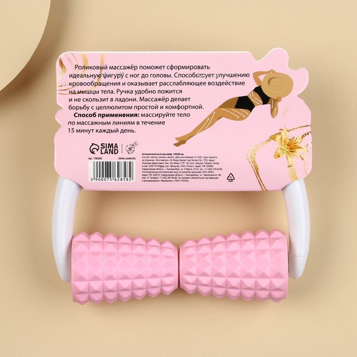Роликовый массажёр разомнёт и разогреет мышцы, улучшит кровообращение и приведёт кожу в тонус. Изделие дарит чувство расслабления, борется с целлюлитом и предотвращает его появление. Подойдет для любой части тела, которой необходимо снятие напряжения или лифтинг-эффект.