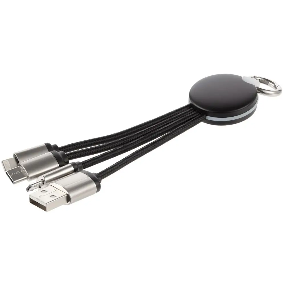 Кабель-брелок со множеством типов разъемов —Type-C, Micro USB и Lightning—позволит всем устройствам всегда быть в полном заряде.
