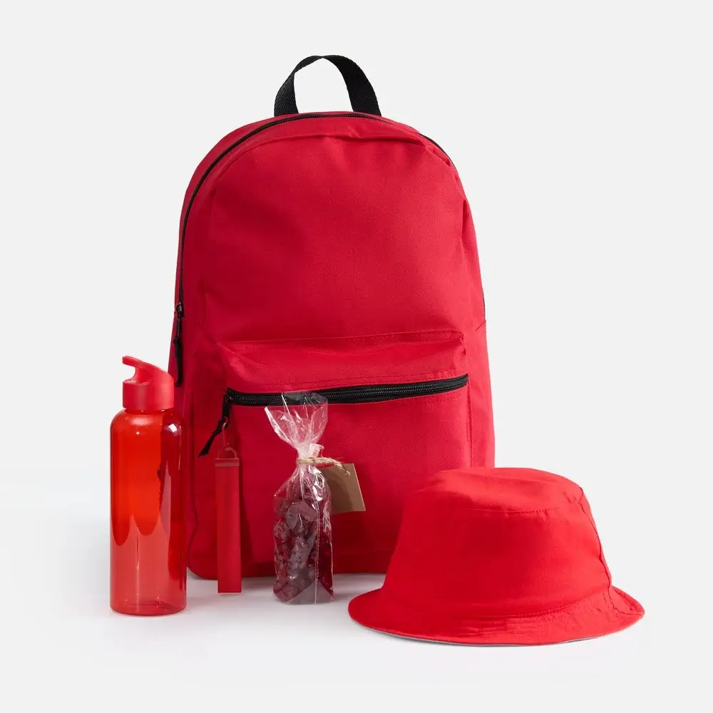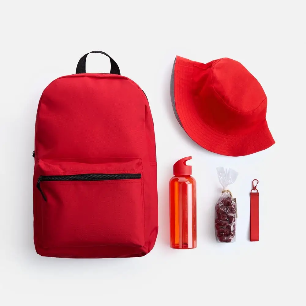 В нем есть все необходимое для комфортной летней прогулки: всегда актуальная в солнечный день панама, стиль которой можно менять буквально на ходу; бутылка для воды оптимального объема, а также сладкий снек для полезного и питательного перекуса. А захватить все с собой, конечно, будет удобно в лаконичном базовом городском рюкзаке, дополнительно оформленном ремувкой — стильным съемным текстильным брелком.