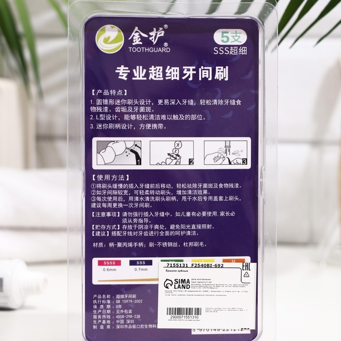 Ершики для брекетов и зубов, набор 5 шт., 0.6 мм
