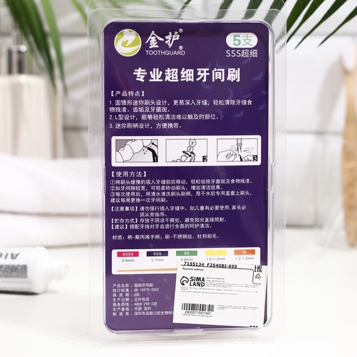 Ершики для брекетов и зубов, набор 5 шт., 0.7 мм