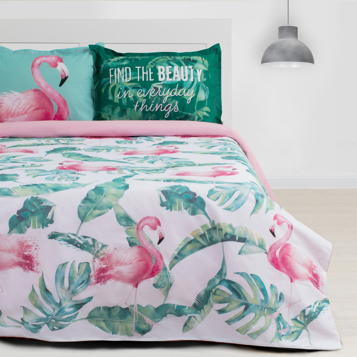 Постельное бельё "Этель" 2 сп Фламинго 175х215 см, 200х220 см, 50х70+3 см - 2 шт