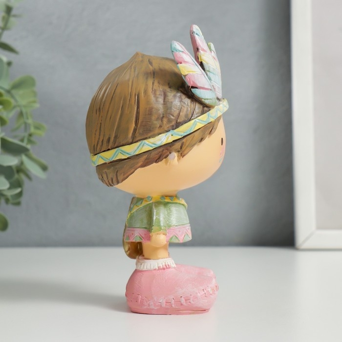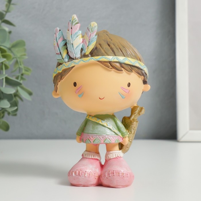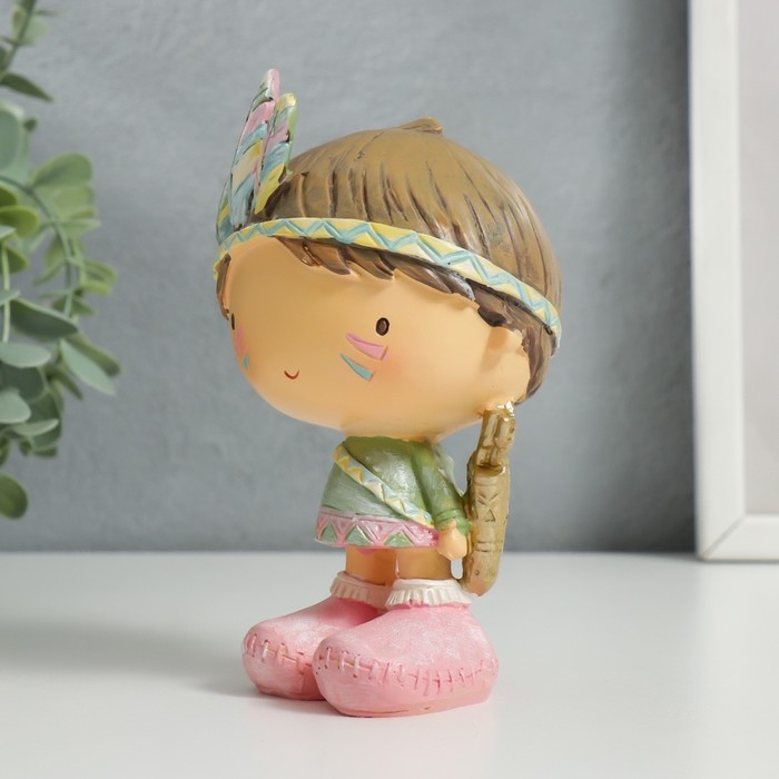 Сувенир полистоун "Малыш-индеец с луком и стрелами" 14х7х8,5 см