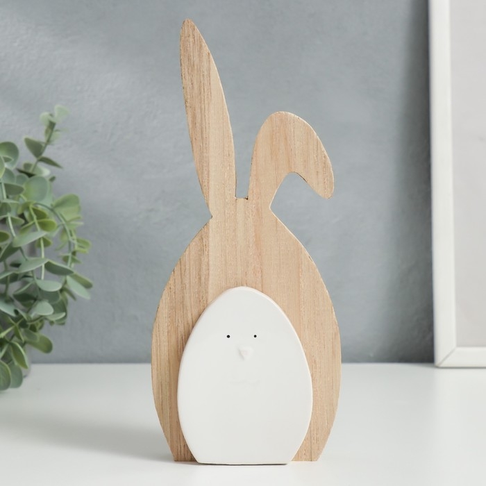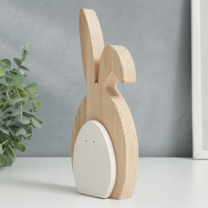 Сувенир дерево, керамика "Зайчик белый" 21х3х9,3 см