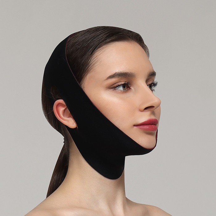 Маска текстильная для коррекции овала лица, на липучке, 62 × 9,5 см, цвет чёрный/розовый