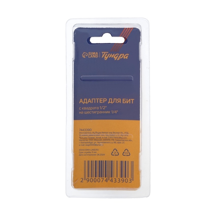 Адаптер для бит ТУНДРА, с квадрата 1/2" на шестигранник 1/4"