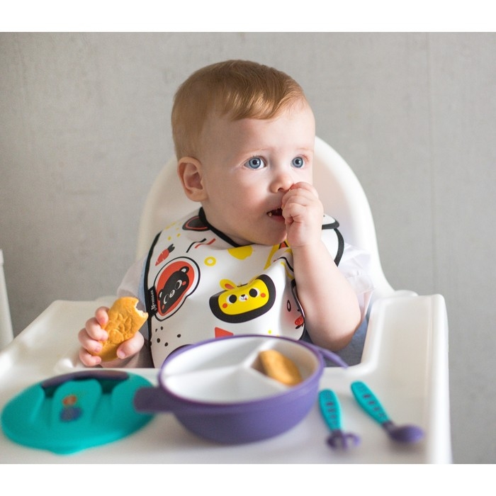 Нагрудник для кормления «Малыши» Г. Доман непромокаемый на липучке, с карманом