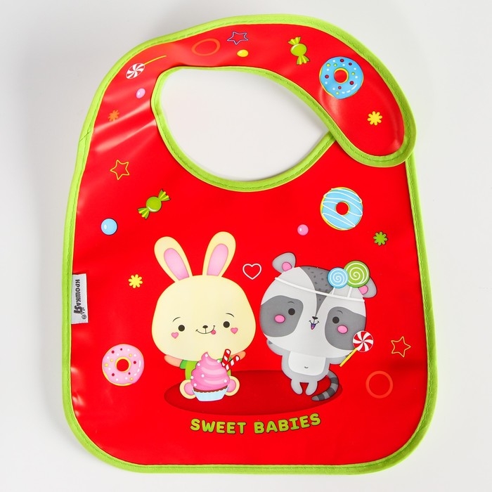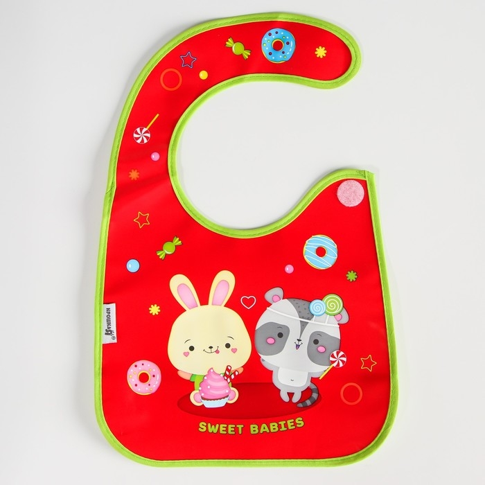 Нагрудник для кормления «Candy Bar» непромокаемый на липучке, с карманом