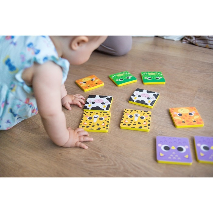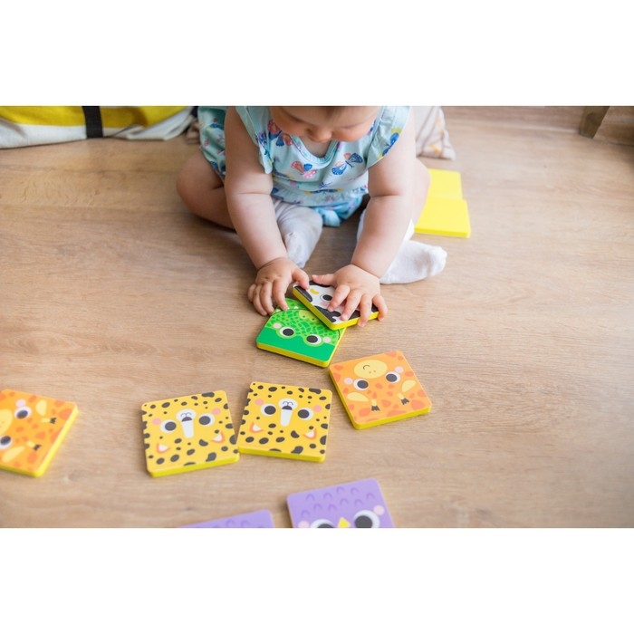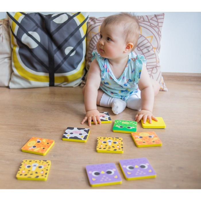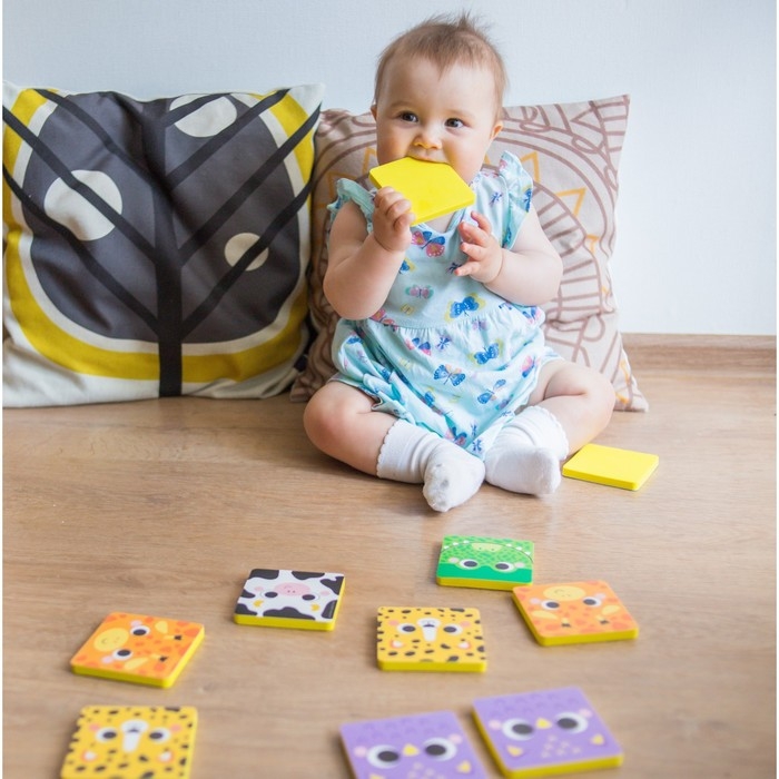 Тщательно перемешайте фигурки и разложите их однотонной стороной вверх. Теперь по очереди переворачивайте по две фигурки.