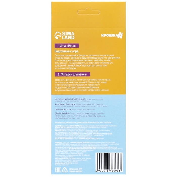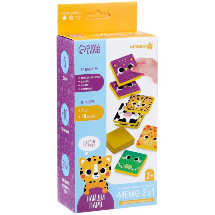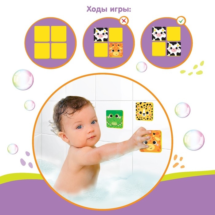 Мемо-игра: Присоски многоразовые для игры в ванной «Морские животные», найди пару, 5 пар, 10 стикеров EVA, Крошка Я