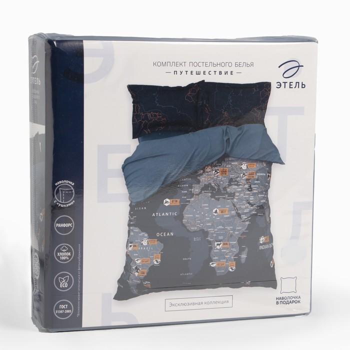 Постельное бельё "Этель" 2 сп Путешествие 175х215 см, 200х220 см, 50х70+3 см - 2 шт, ранфорс