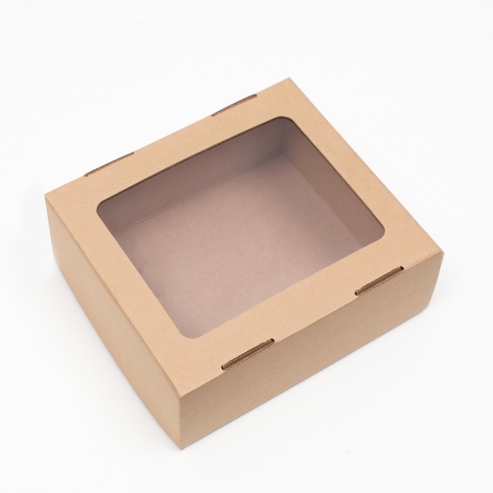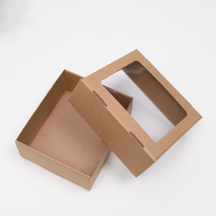 Коробка сборная, крышка-дно, «бурая», с окном, 21 х 18 х 8 см