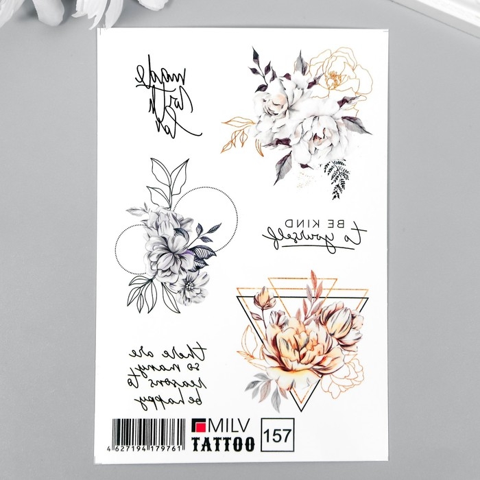 Татуировка на тело "Цветы и надписи" 10х15 см