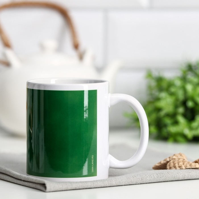 Кружка изготовлена из керамики. Рисунок нанесён методом сублимации, при котором краска проникает в верхний слой изделия, поэтому изображение получается стойким.