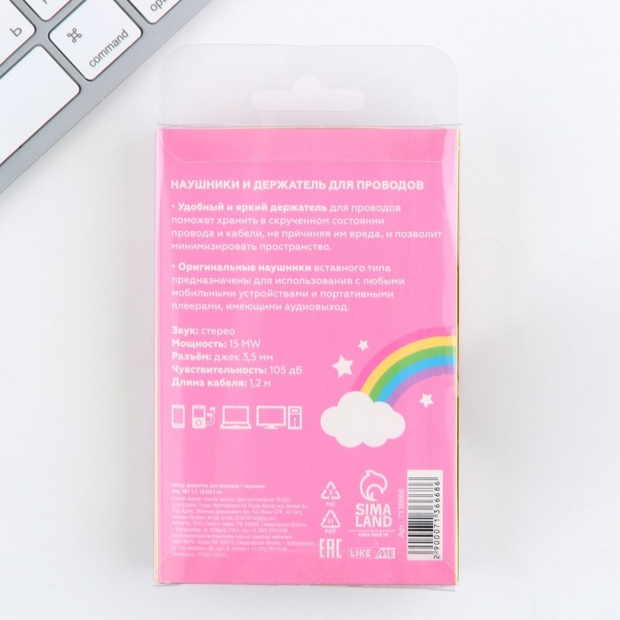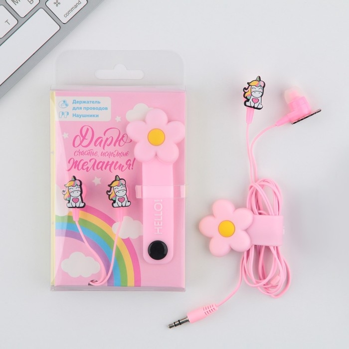Наушники вакуумные, держатель для проводов «Единорог дарю счастье», мод.VBT 1,1, 12,5 х 8,5 см.