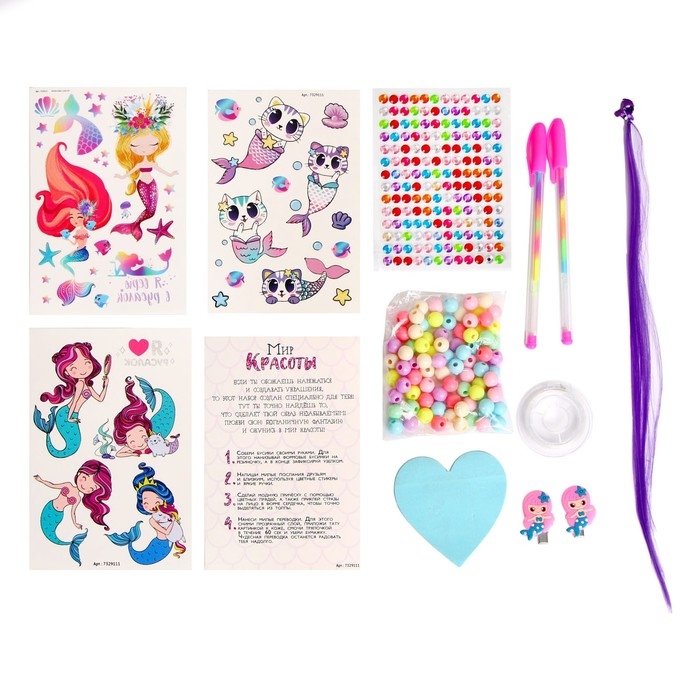 Набор детских татуировок «Милая русалочка», тату — 25 шт., с ободком, 3+