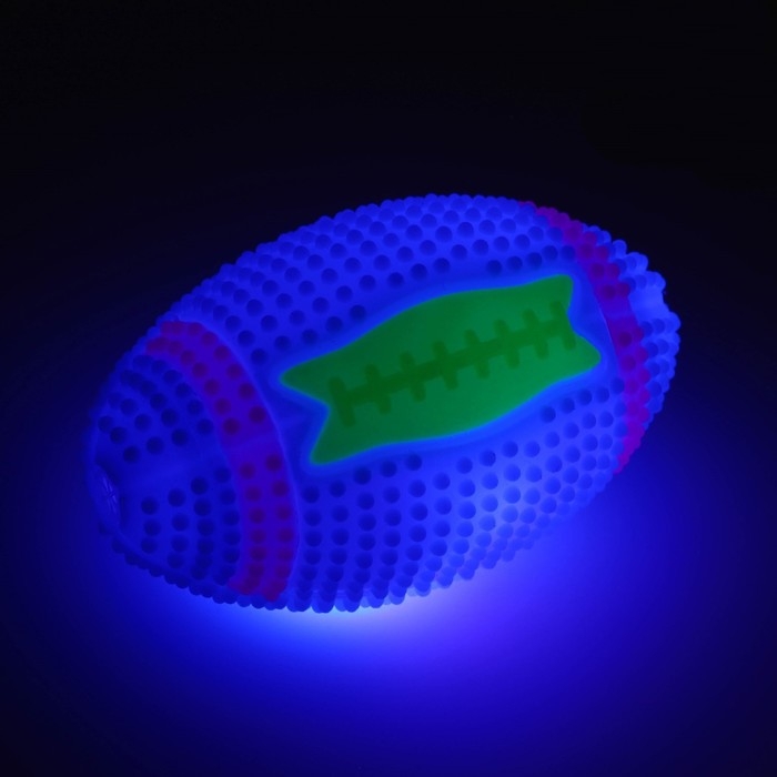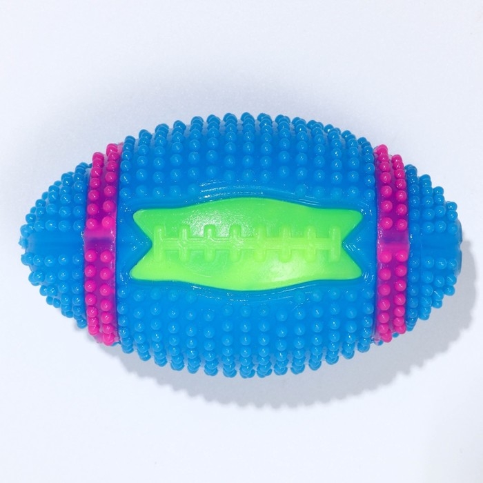 Мяч для собак светящийся с пищалкой "Регби", TPR, 7 см, голубой