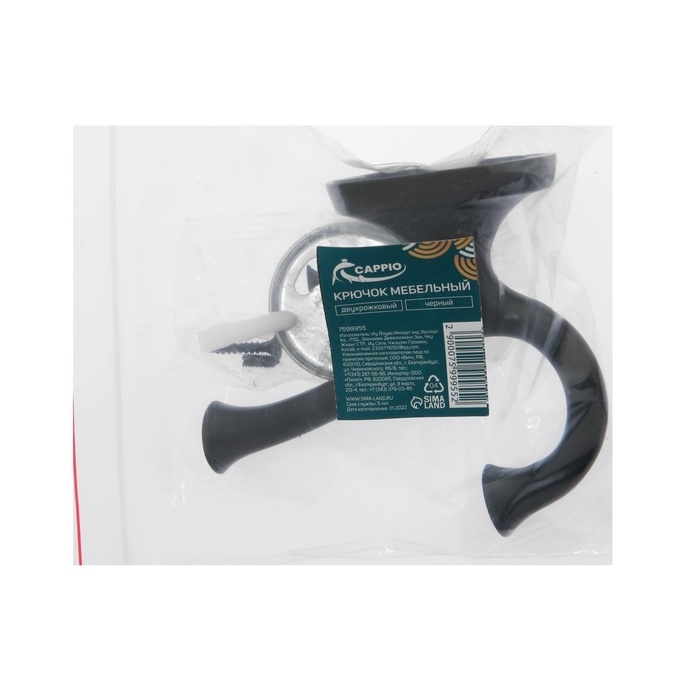 Крючок мебельный CAPPIO VALUE, двухрожковый, черный