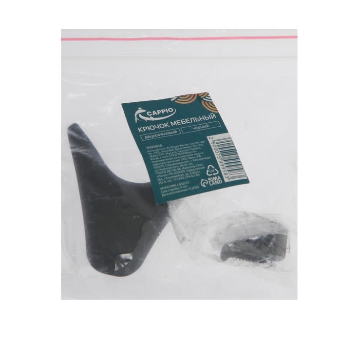 Крючок мебельный CAPPIO GOAT, двухрожковый, черный