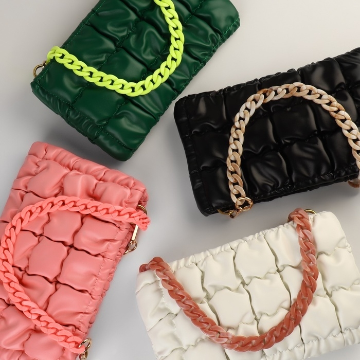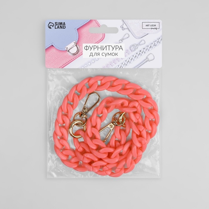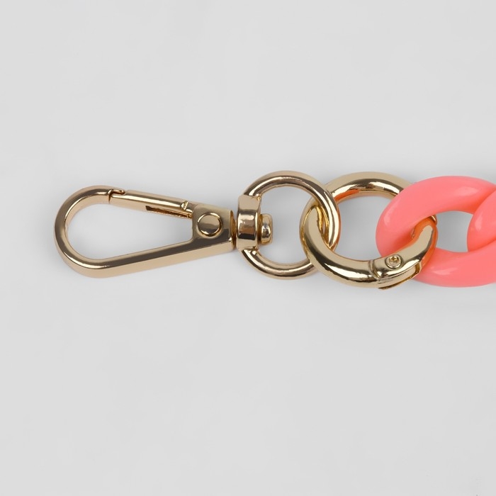 Цепочка для сумки, пластиковая, с карабинами, 23 × 17 мм, 68 см, цвет розовый/золотой