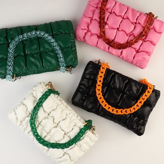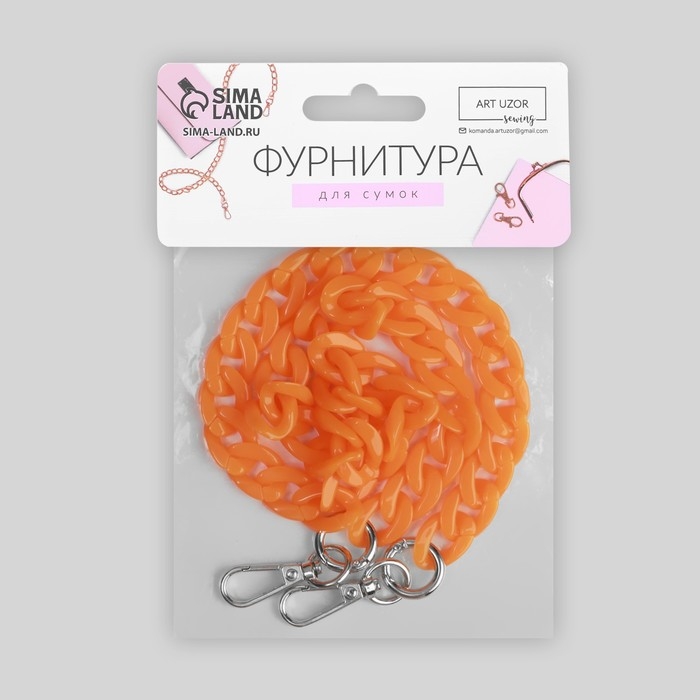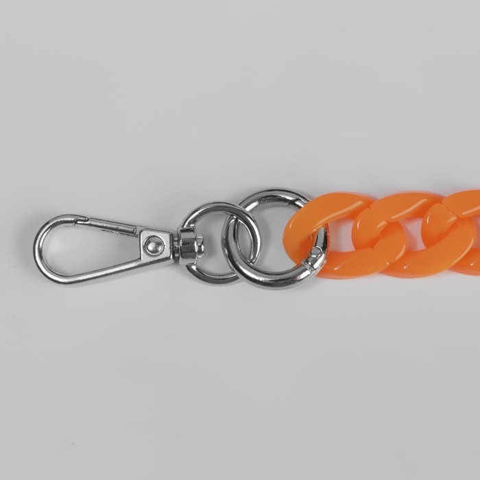 Цепочка для сумки, пластиковая, с карабинами, 23 × 17 мм, 68 см, цвет оранжевый/серебряный