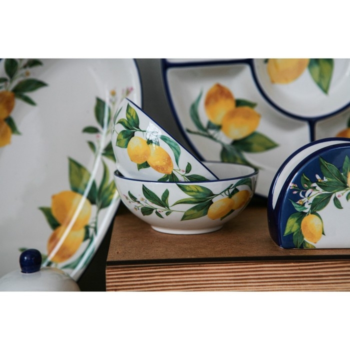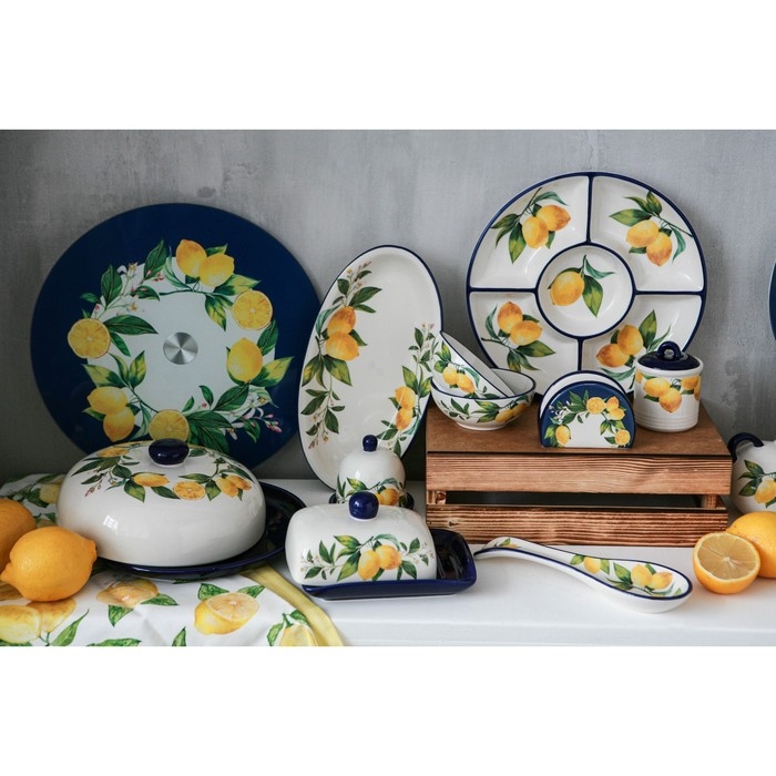 Посуда серии «Лимоны» от торговой марки Доляна изготовлена из качественного доломита. Благодаря оригинальному дизайну, изделия гармонично дополнят сервировку стола, а также прекрасно подойдут в качестве подарка. Посуда выполнена в ярких тонах, что позволит вписать её практически в любой интерьер.