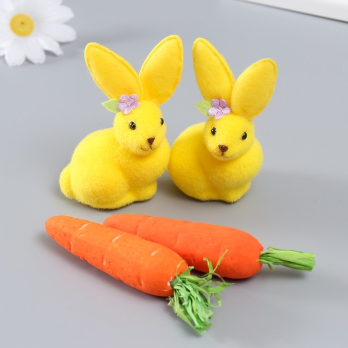 Сувенир "Зайчонок с морковкой" набор 4 шт 15х18 см МИКС