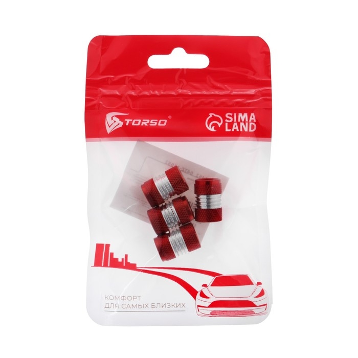 Колпачок на вентиль TORSO, красный, набор 4 шт