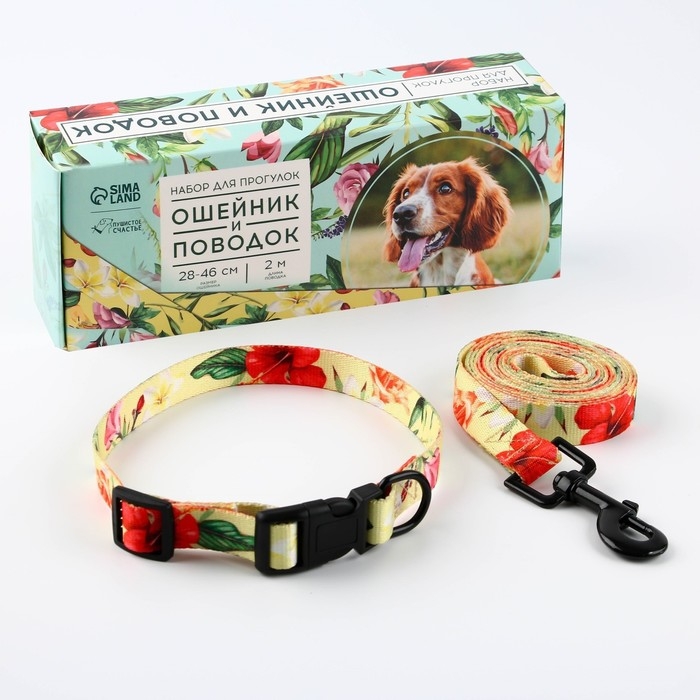 Набор «Цветы», застёжка - фастекс, поводок 2 м и ошейник 28-46 см