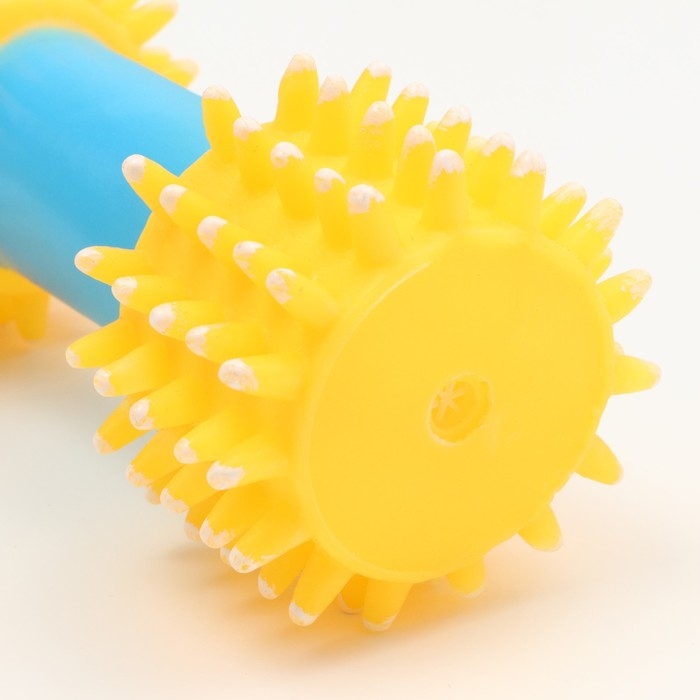 Игрушка для собак пищащая "Массажная гантель", 14 см, жёлтая/голубая