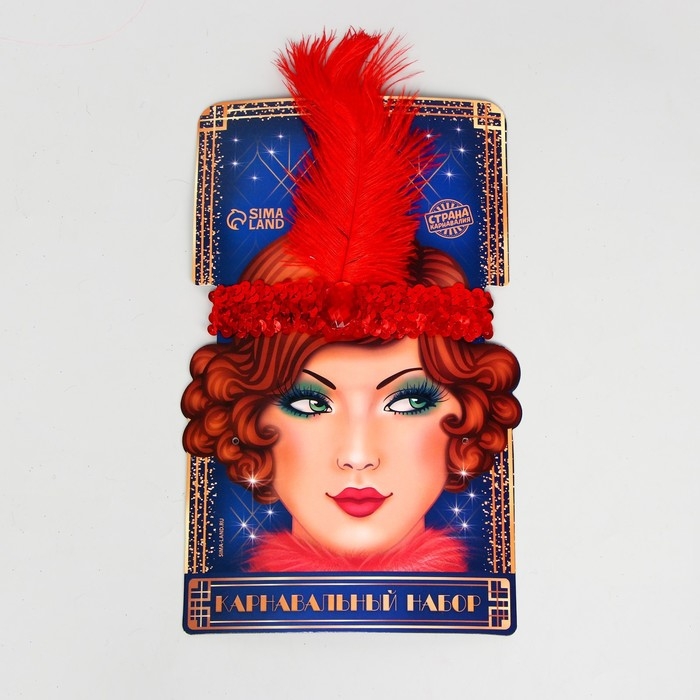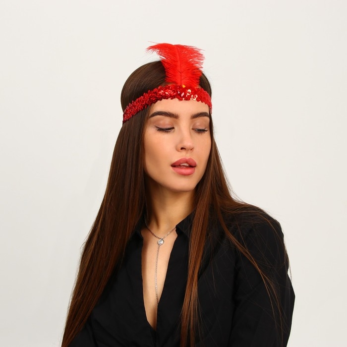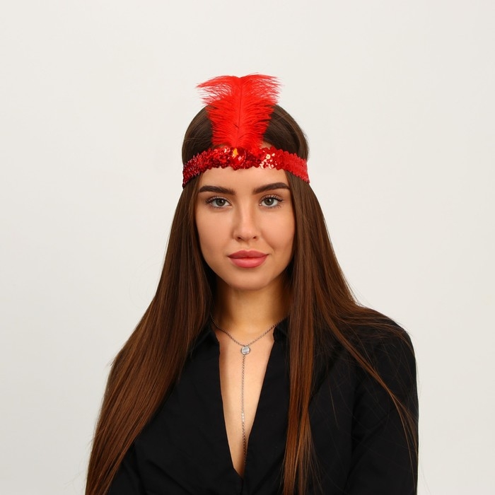 Повязка на голову с пером карнавальная, цвет красный