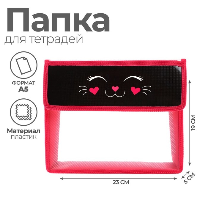 Папка для тетрадей А5 (230 х 190 х 50 мм), с клапаном на липучке, пластик/текстиль, Calligrata, "Мордочка кота"