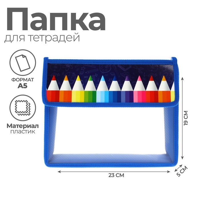 Папка для тетрадей А5 (230 х 190 х 50 мм), с клапаном на липучке, пластик/текстиль, Calligrata, "Карандаши"