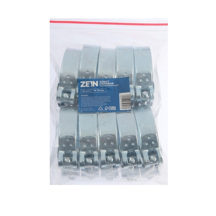 Хомут силовой ZEIN engr, диаметр 74-79 мм, ширина 24 мм, оцинкованный