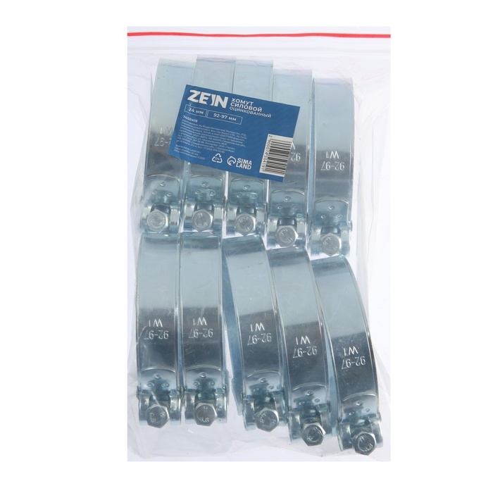 Хомут силовой ZEIN engr, диаметр 92-97 мм, ширина 24 мм, оцинкованный