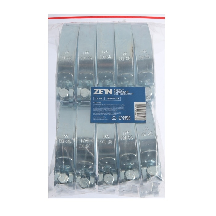 Хомут силовой ZEIN engr, диаметр 98-103 мм, ширина 24 мм, оцинкованный