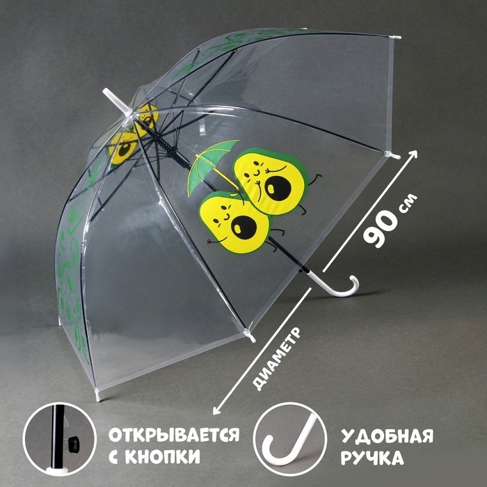 Зонт детский «Авокадо» полуавтомат прозрачный, d=90см
